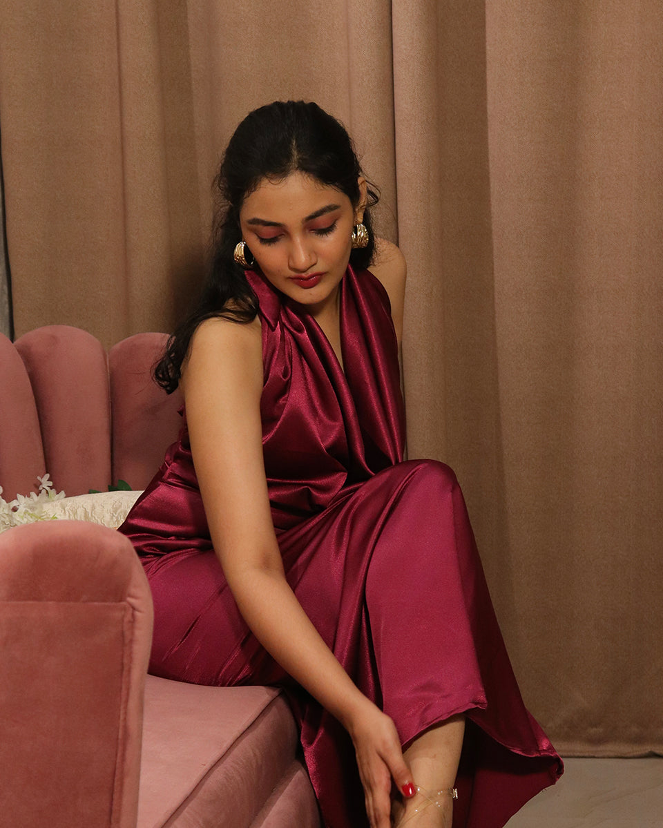 Perfect for evening occasions, cocktail events, or any special moment, the Charlotte Plum Silk Dress blends timeless charm with modern flair.