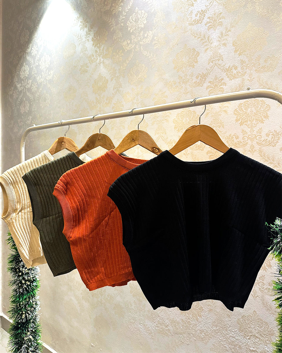 Cozy up in style with our Drop Shoulder Knitted Crop Top, a modern essential for your wardrobe. Crafted from premium cotton blend rib knitted fabric, this top offers a perfect balance of comfort and trendiness.