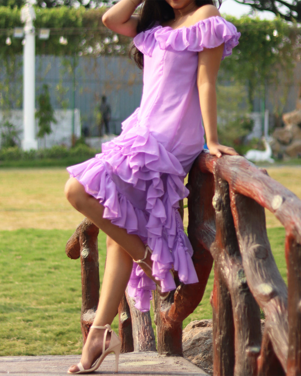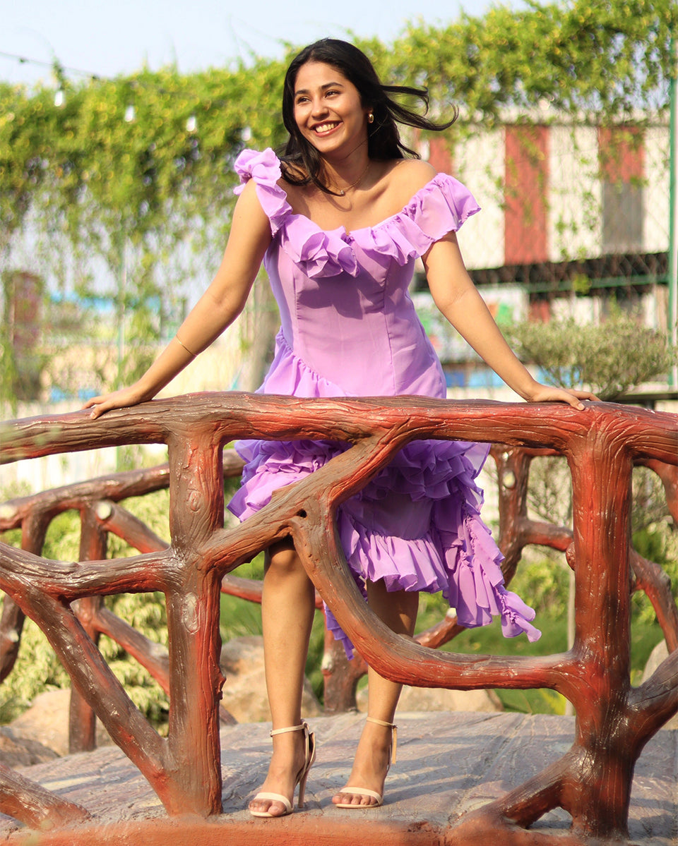 Introducing the Lila Ruffle Dress, a charming piece designed for comfort and style, perfect for picnics and day dates. Crafted from lightweight georgette for the main fabric and a soft crepe lining, this dress ensures you look and feel fabulous.