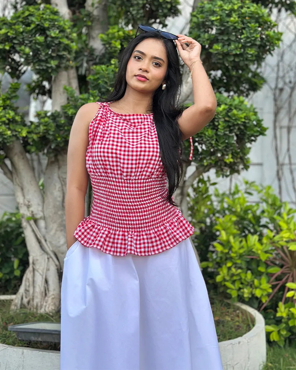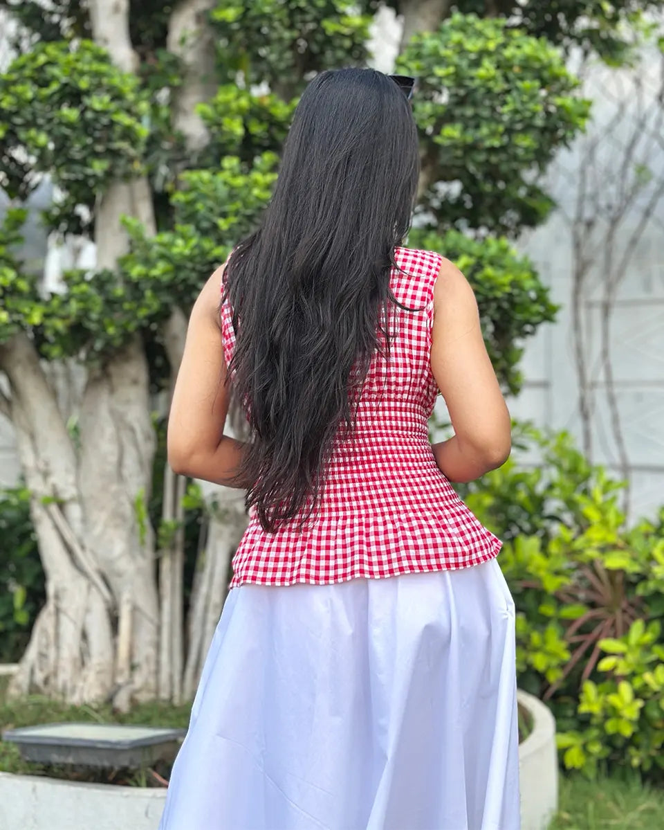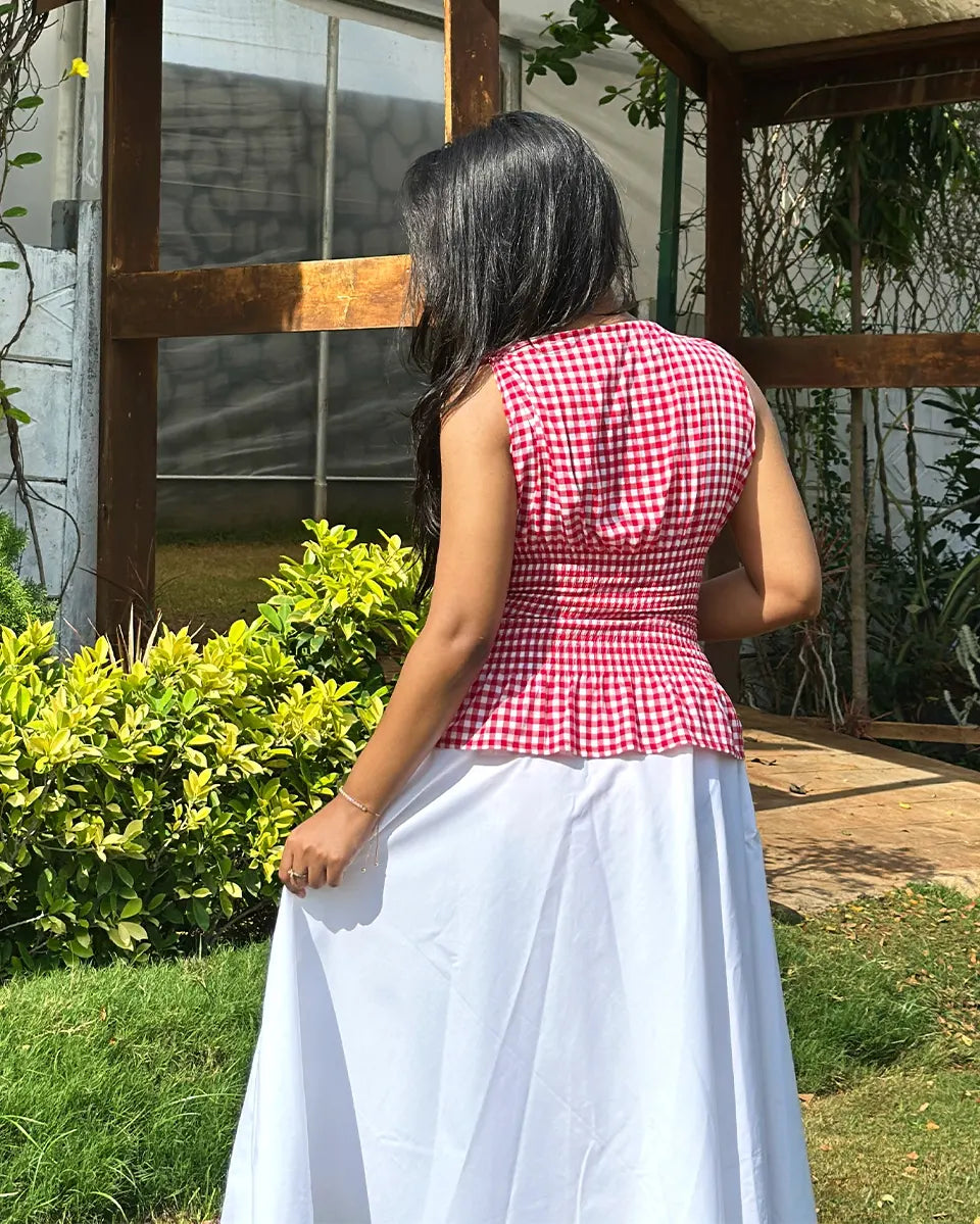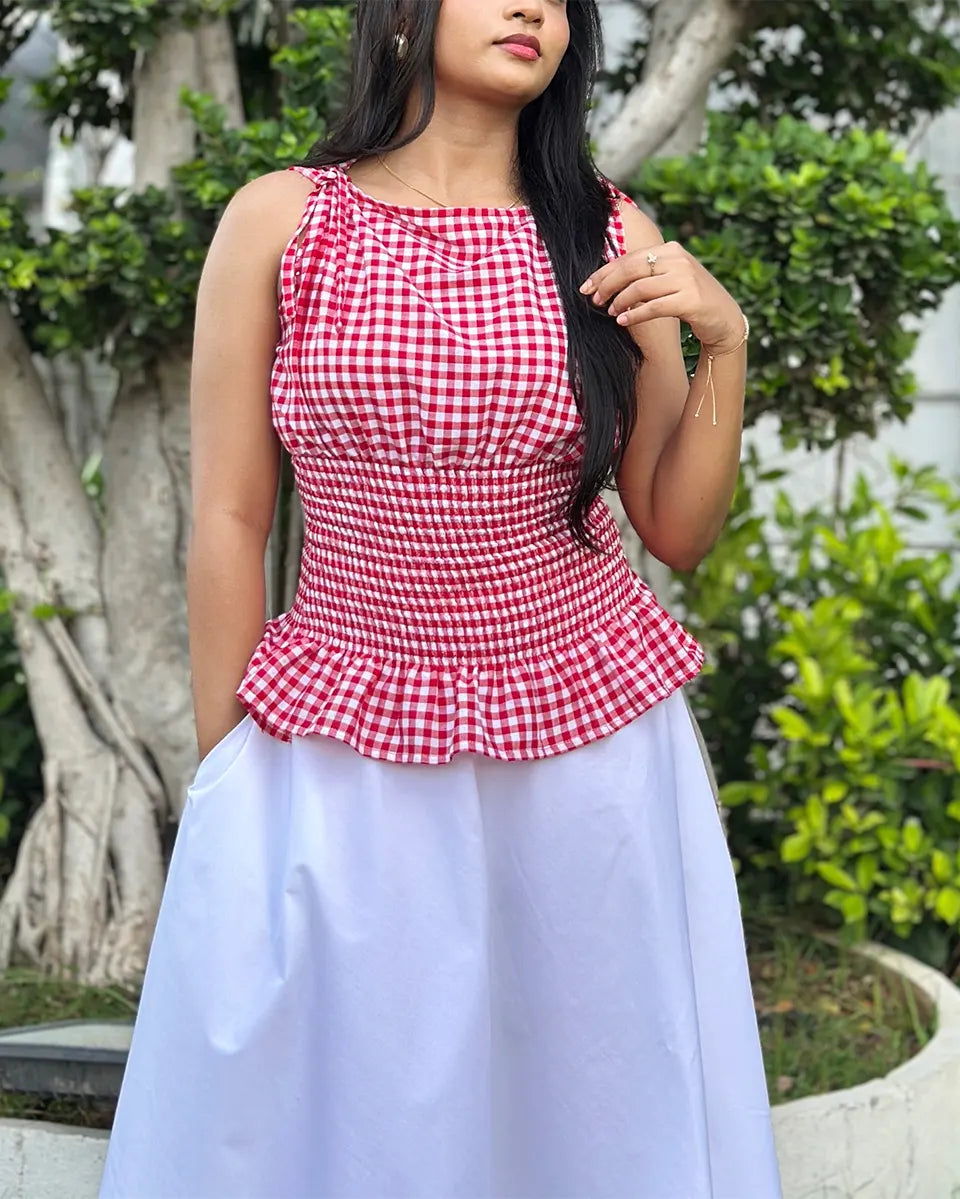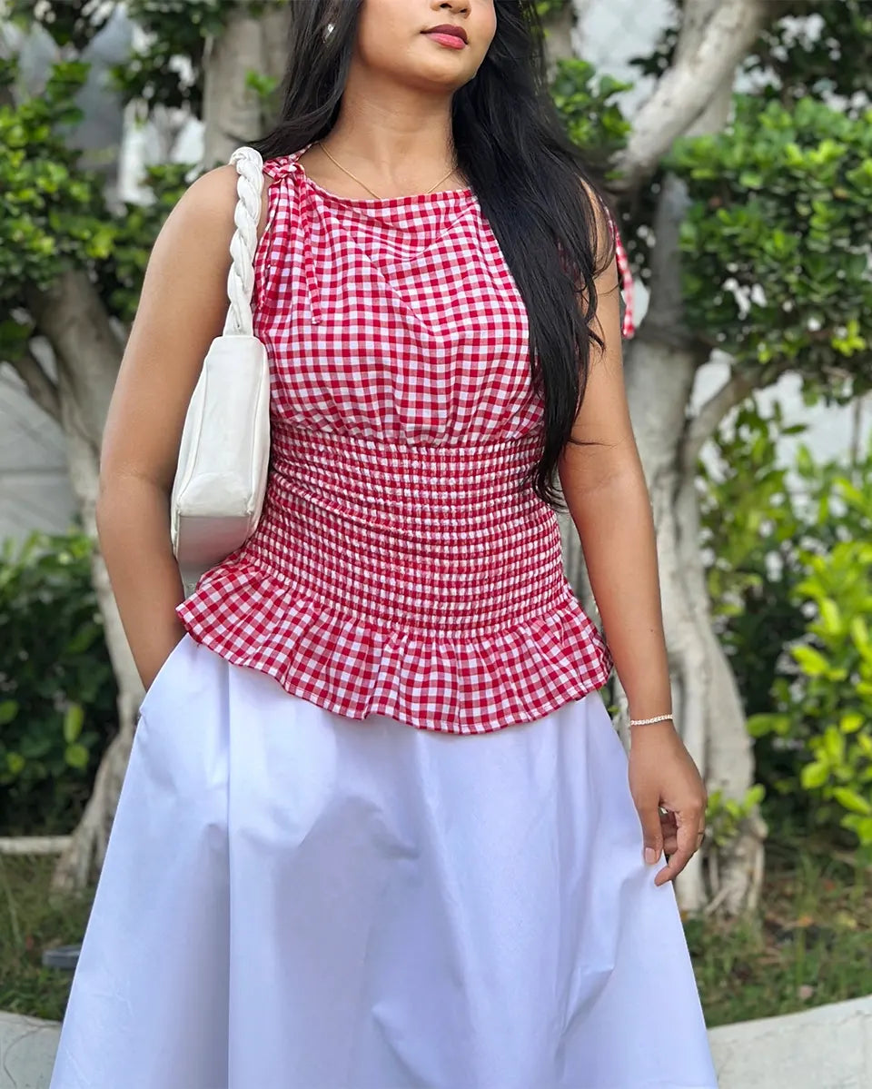 Whether you're pairing it with denim or layering it with accessories, the Cherry Plaid Top adds a fresh and stylish touch to any outfit.