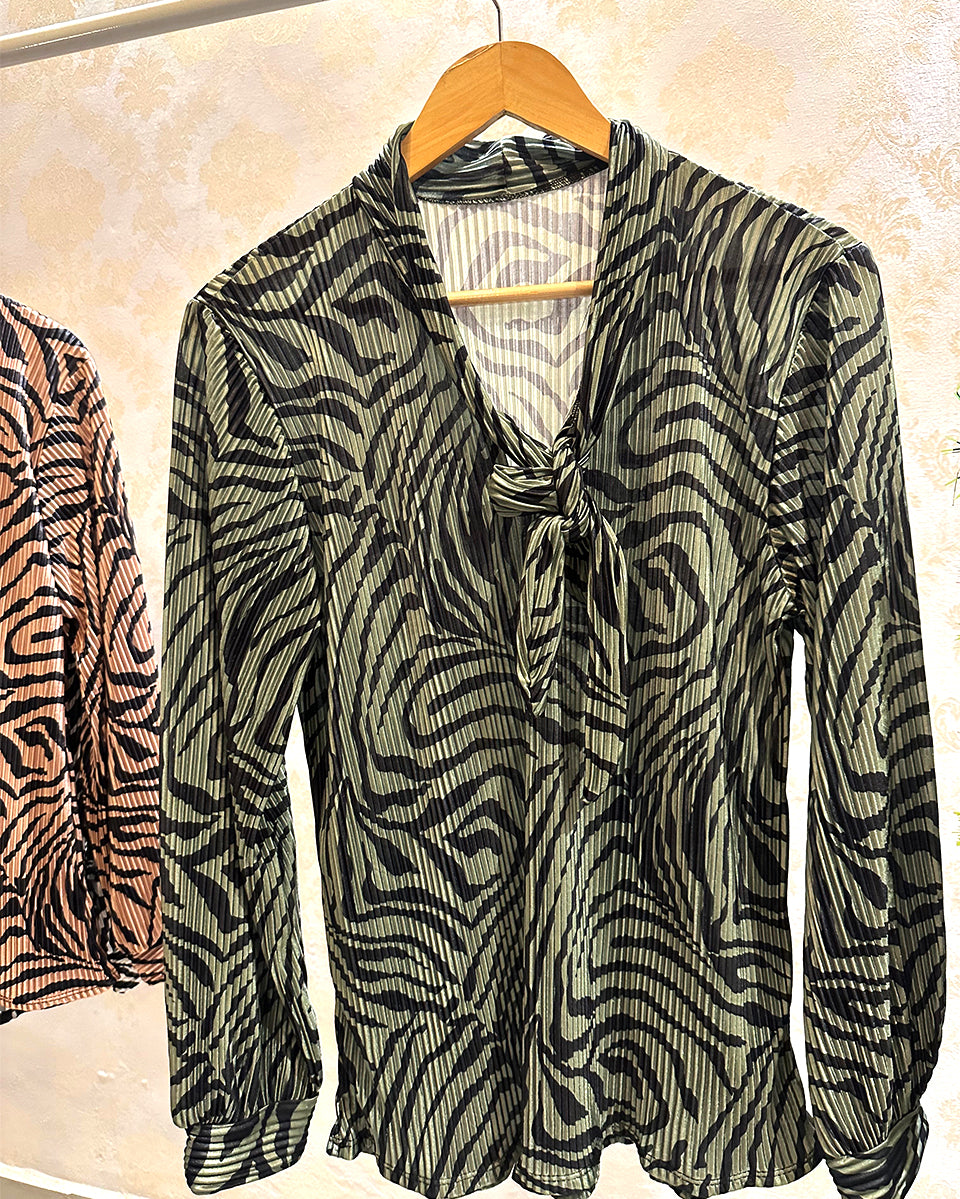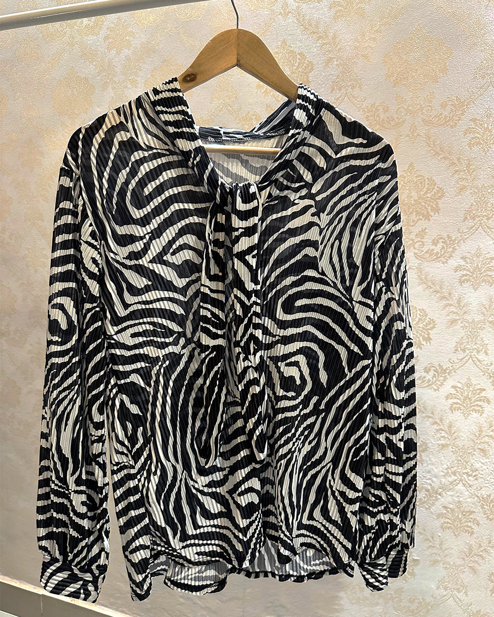 Upgrade your business casual wardrobe with the Zebra Print Pleated Shirt, a stylish piece that combines sophistication with comfort.